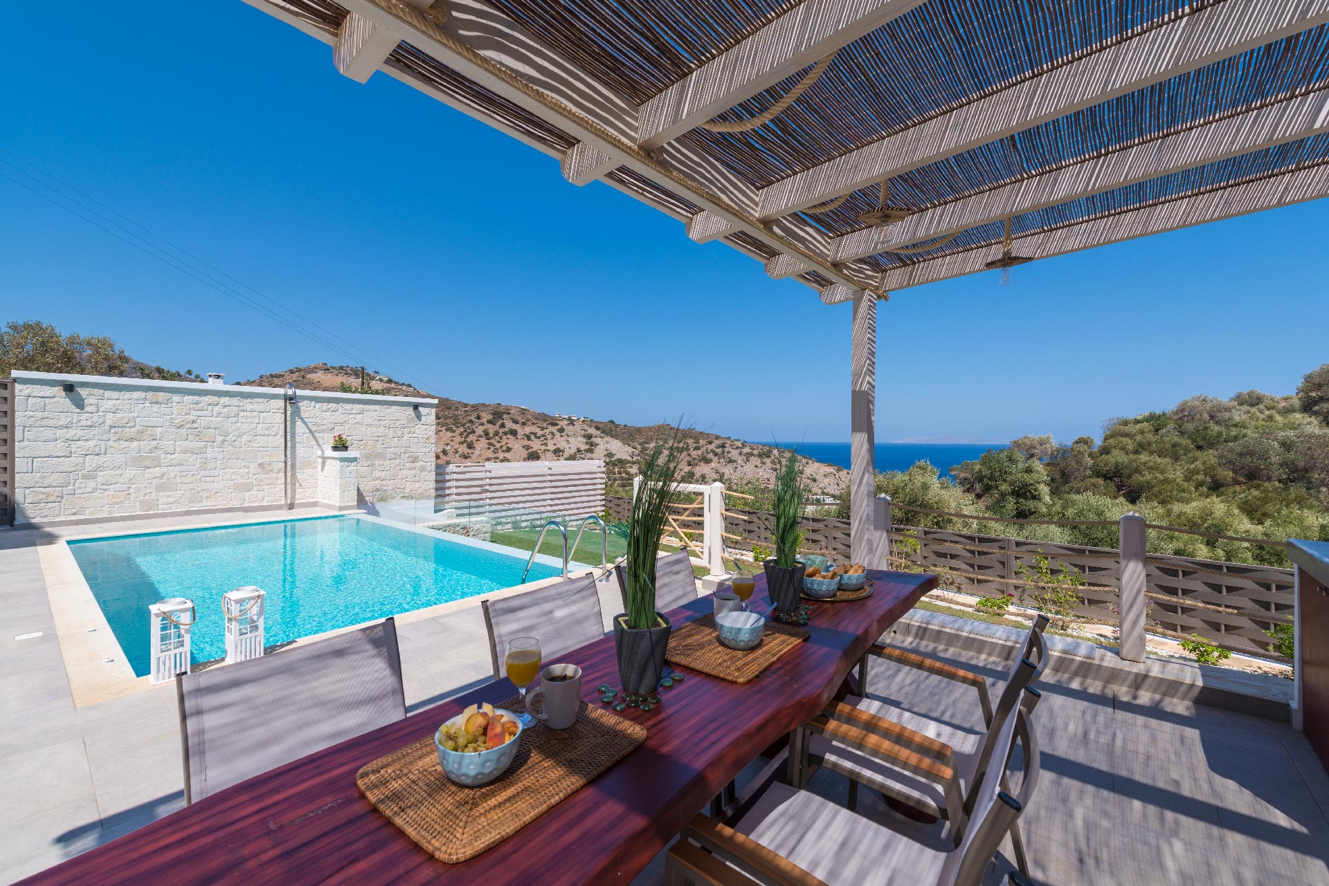 Located in the Palaiokastro area, on the north Coast of Crete 14km west of Heraklion and just 5 minutes by car from Palaiokastro beach. Both villas offer panoramic views of the Mediterranean Sea, the mountains and the Cretan countryside with its famous olive trees.