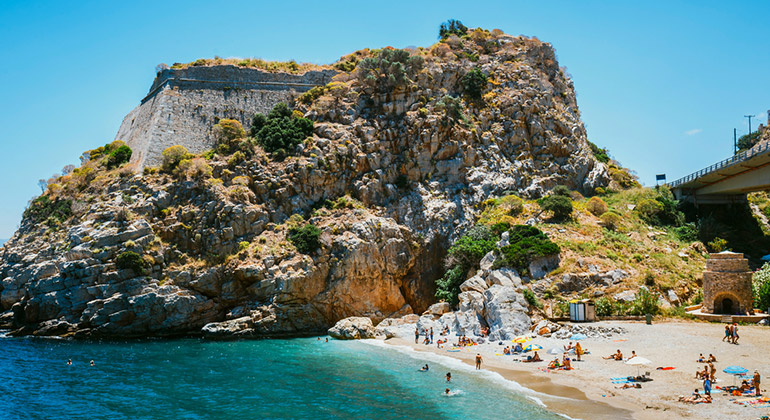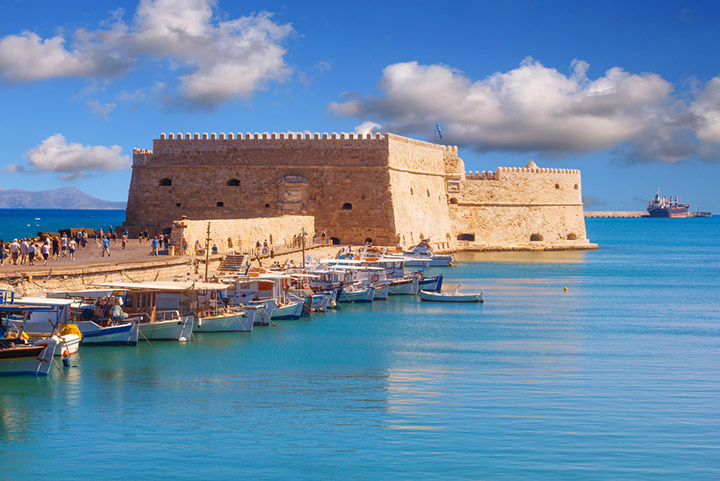 Palaiokastro is a seaside settlement located 14km west of the city of Heraklion. Its small beach, called Chelidoni, combines pebbles on the right side with sand on the left and remains unaffected by any northern winds in the area. The sea is calm without any waves, almost all year round.